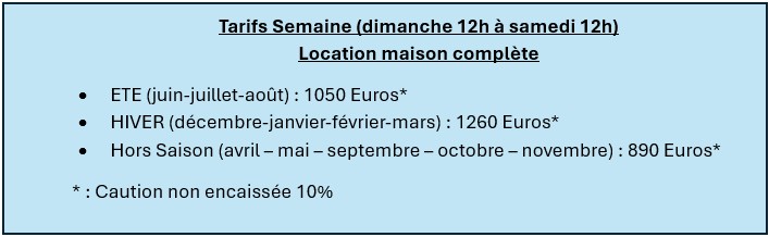 Maison à louer, saisons été, hiver, hors saison, semaine